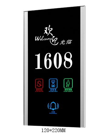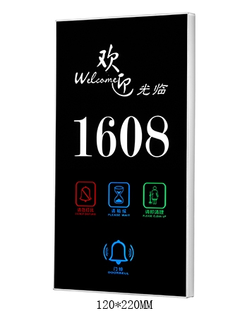 Function: Hotel Name, Room Number, DND, Check-IN,Please Wait, Please Clean, Doorbell. That’s can be customized.