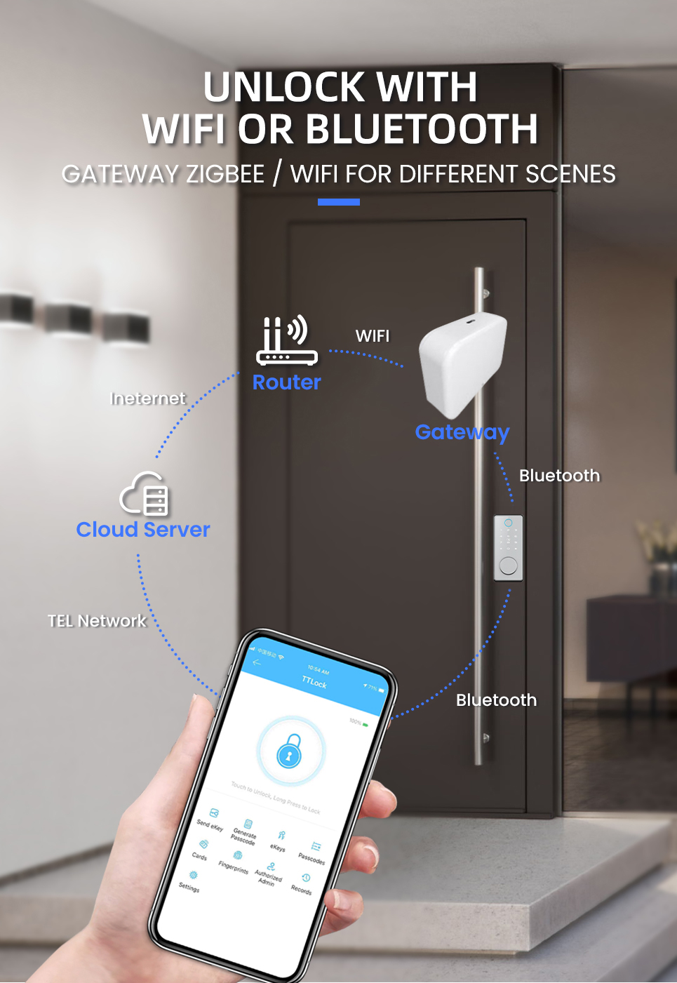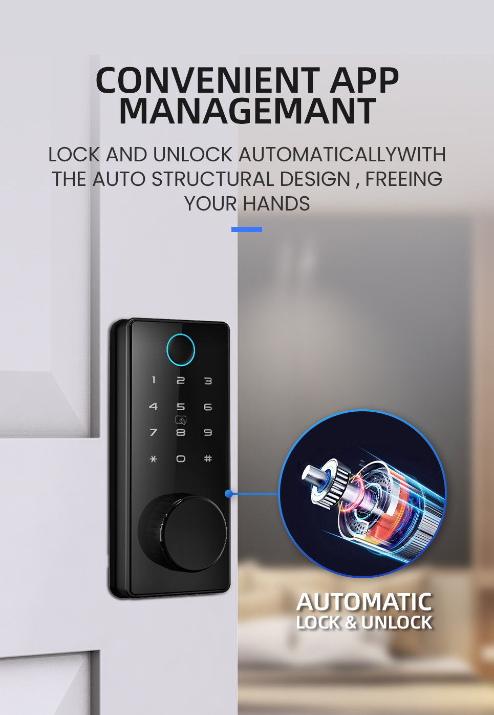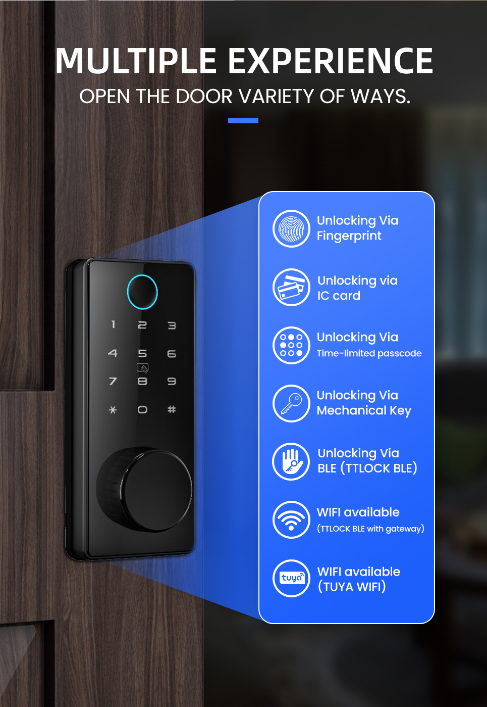 Unlocking Ways:App, password, fingerprint, IC card, mechanical key