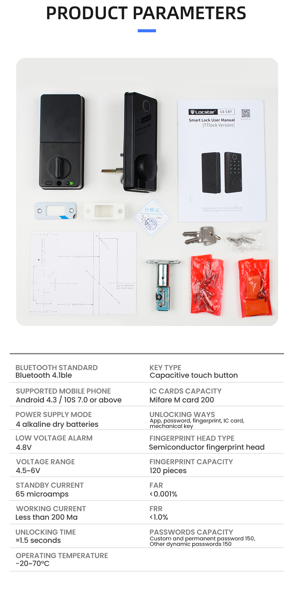 C87 TTLock app smart lock technical parameter: