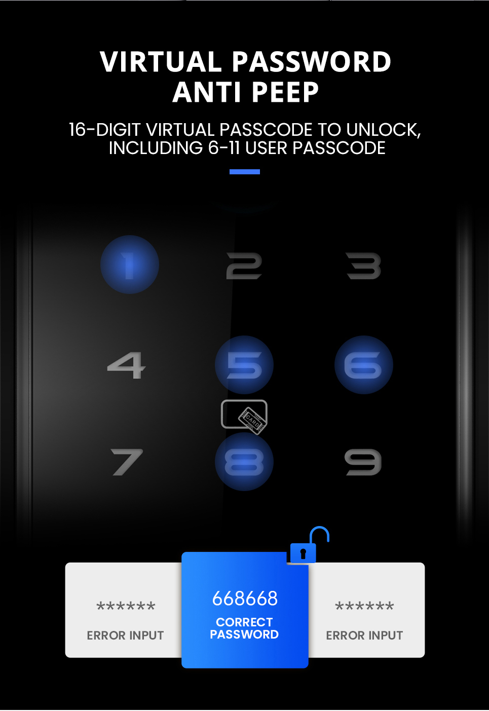 Passwords Capacity:Custom and permanent password 150,Other dynamic passwords 150