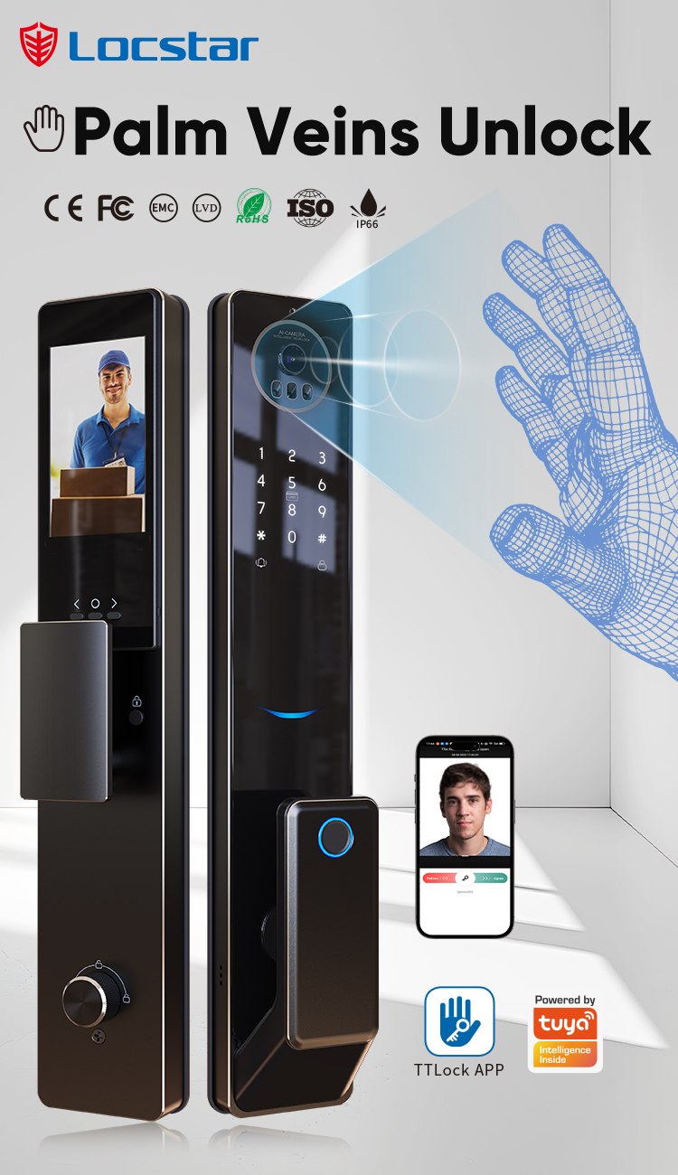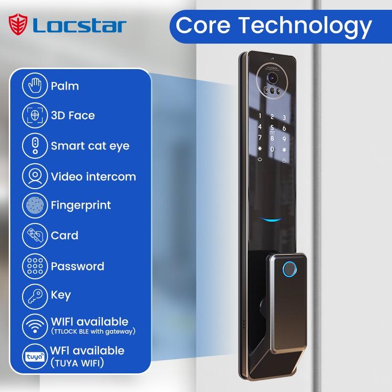 Locstar High Quality 3D Face Recognition Digital Keypad Fingerprint Biometric Automatic Exterior Smart Door Lock with Camera