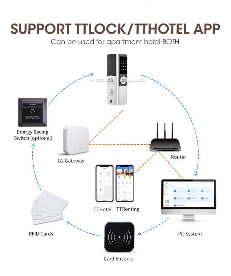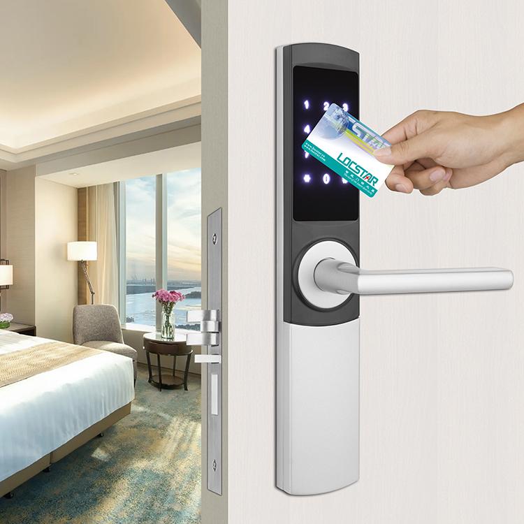 LCOSTAR smart hotel lock(LS-8058L-TT),can unlock by key card and mechanical key,password. support different management requirement, such as building card/floor card/maid zoon card management/ foreman card/front desk card and so on. also supply full set accessories to work together, encoder/energy saver/printing card/data collector.