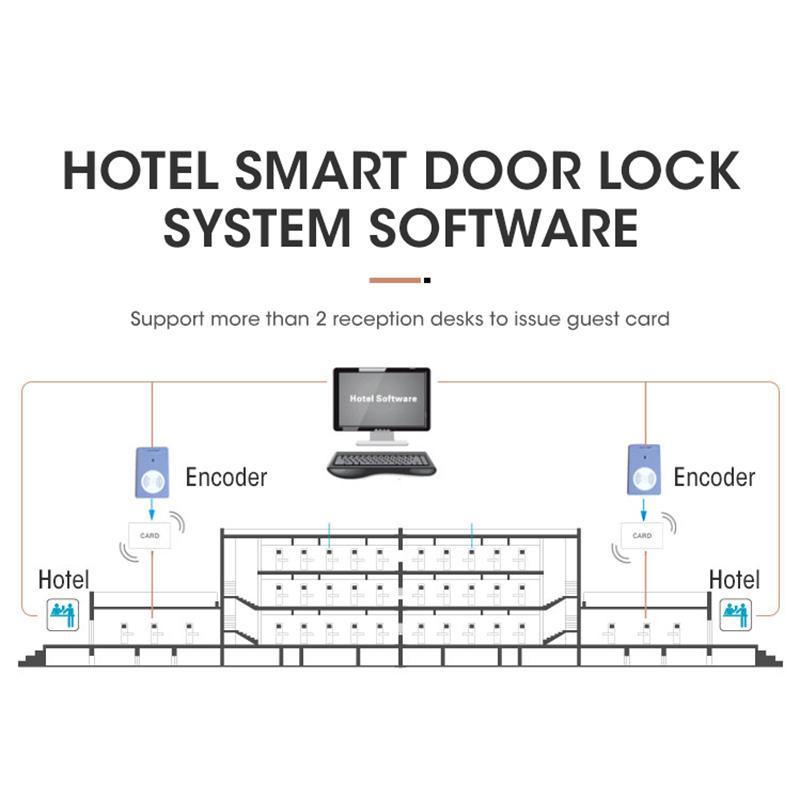8. Hotel locking system includes: hotel locking software, encoder, RF card, energy saving switch, data collector, click to get more information about Hotel smart door lock system.