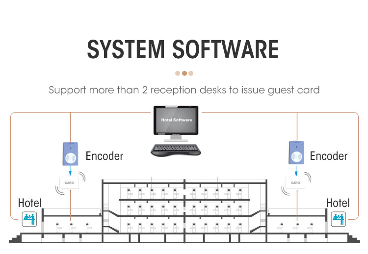 11. Hotel locking system includes: hotel locking software, encoder, RF card, energy saving switch, data collector