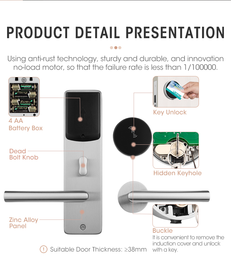 LCOSTAR hotel lock(LS-8202),can unlock by key card and mechanical key. support different management requirement, such as building card/floor card/maid zoon card management/ foreman card/front desk card and so on. also supply full set accessories to work together, encoder/energy saver/printing card/data collector.